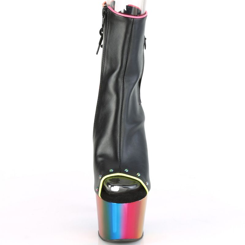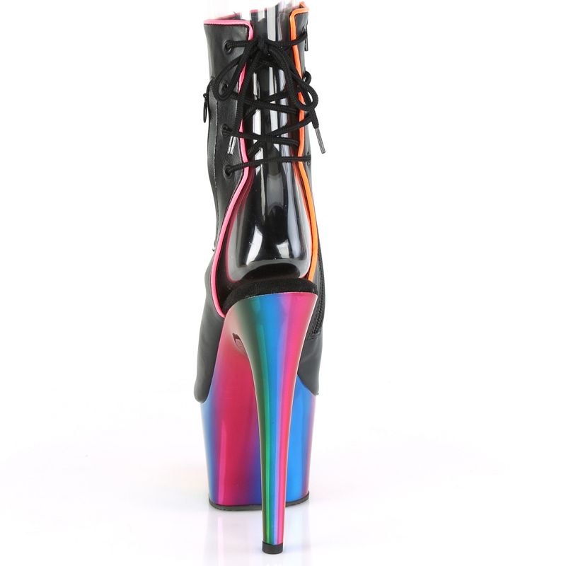 Découvrez l'apogée du style futuriste et fétichiste avec les Bottines à Lacets Plateforme Arc-en-ciel ADORE-1018RC-02 de la marque de référence Pleaser. Ces bottines noires en faux cuir avec des accents Chrome Arc-en-ciel (ADO1018RC-02/BPU/CH) sont une œuvre d'art, conçues pour celles et ceux qui osent se démarquer.