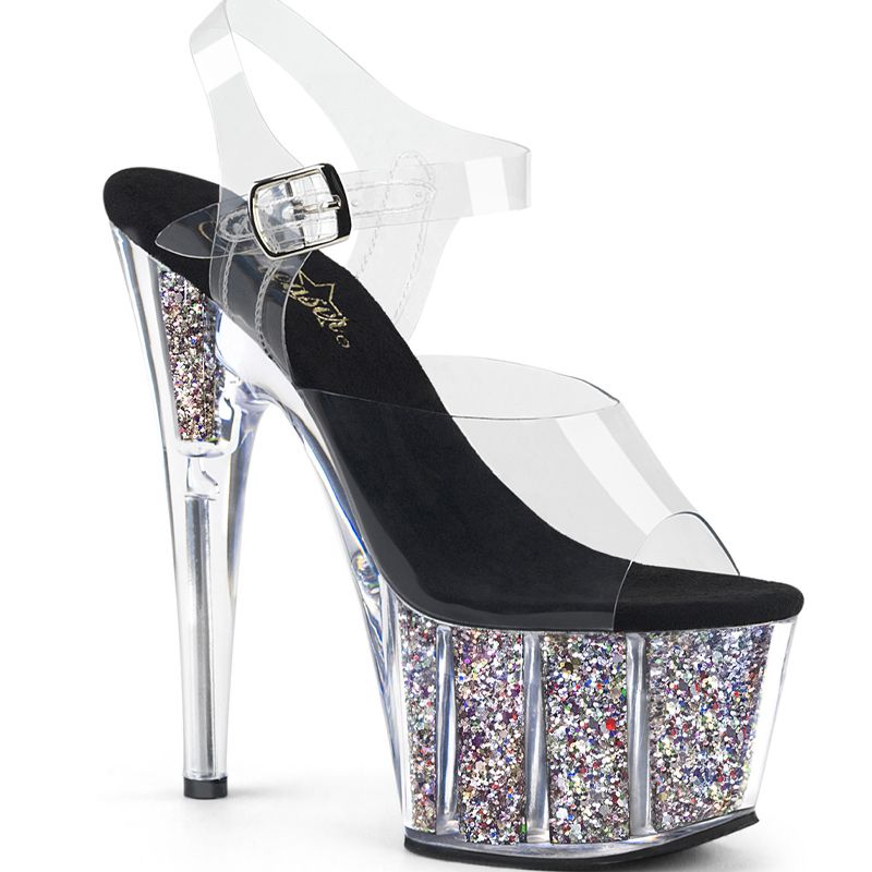 À La Boutique du Haut Talon, nous savons que l'audace se porte aussi bien en public que dans l'intimité. Les Sandales Confettis Éblouissantes Pleaser ADORE-708CG sont l'accessoire ultime pour celles et ceux qui veulent faire une déclaration de style.