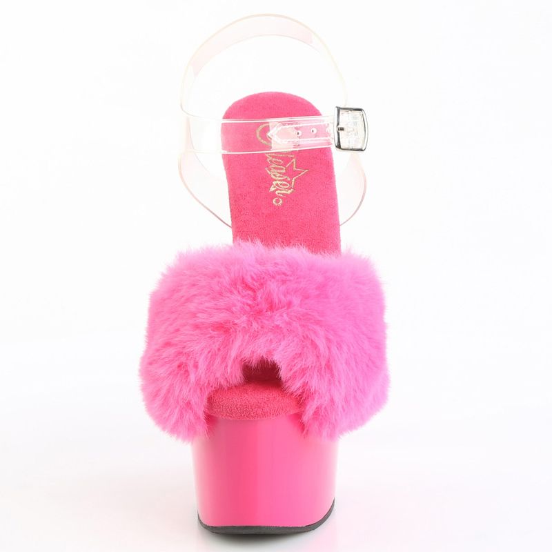 À La Boutique du Haut Talon, nous aimons les pièces qui allient l'audace au confort sensoriel. Les Sandales Fausse Fourrure Peep Toe Pleaser ADORE-708FUR sont une invitation au plaisir. Leur talon aiguille de 7 pouces (178mm) et leur plateforme stable de 2 3/4 pouces (70mm) créent une silhouette sexy et puissante.