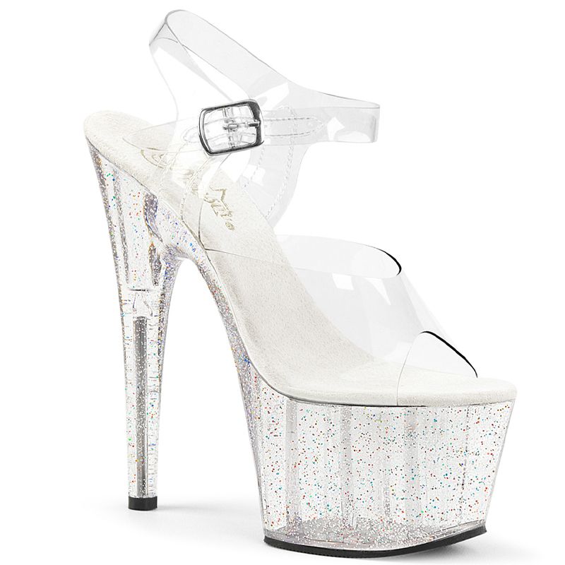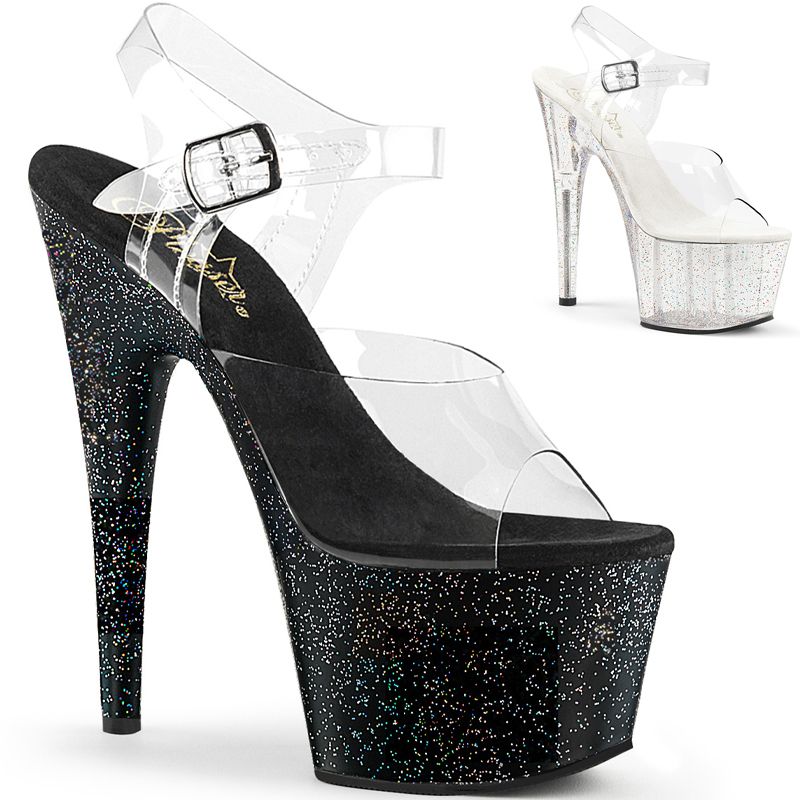 Disposant d'un talon Stiletto de 17.8 cm et d'une plateforme de 7 cm, l'Adore-708MG est ornée de manière captivante de mini paillettes irisées qui brillent à chaque étape. Le design classique clair/noir ajoute une élégance intemporelle à l'ensemble scintillant.