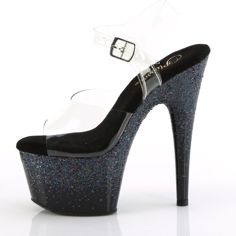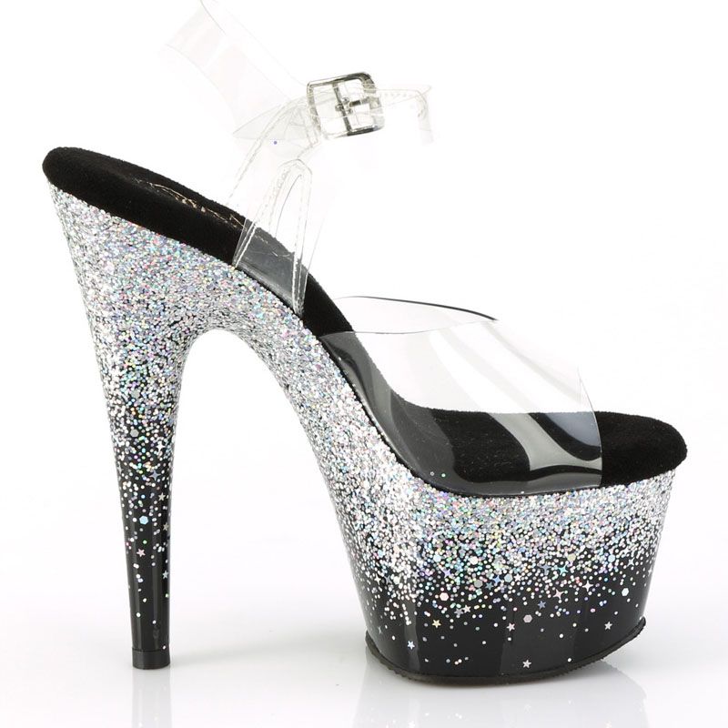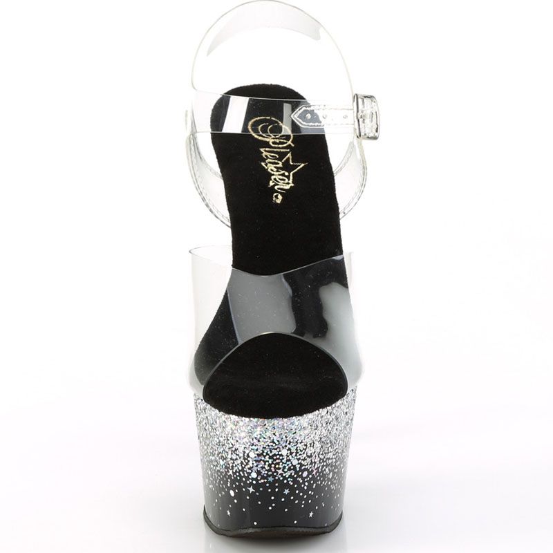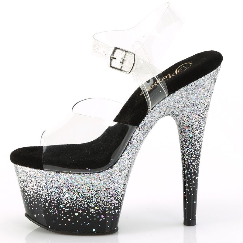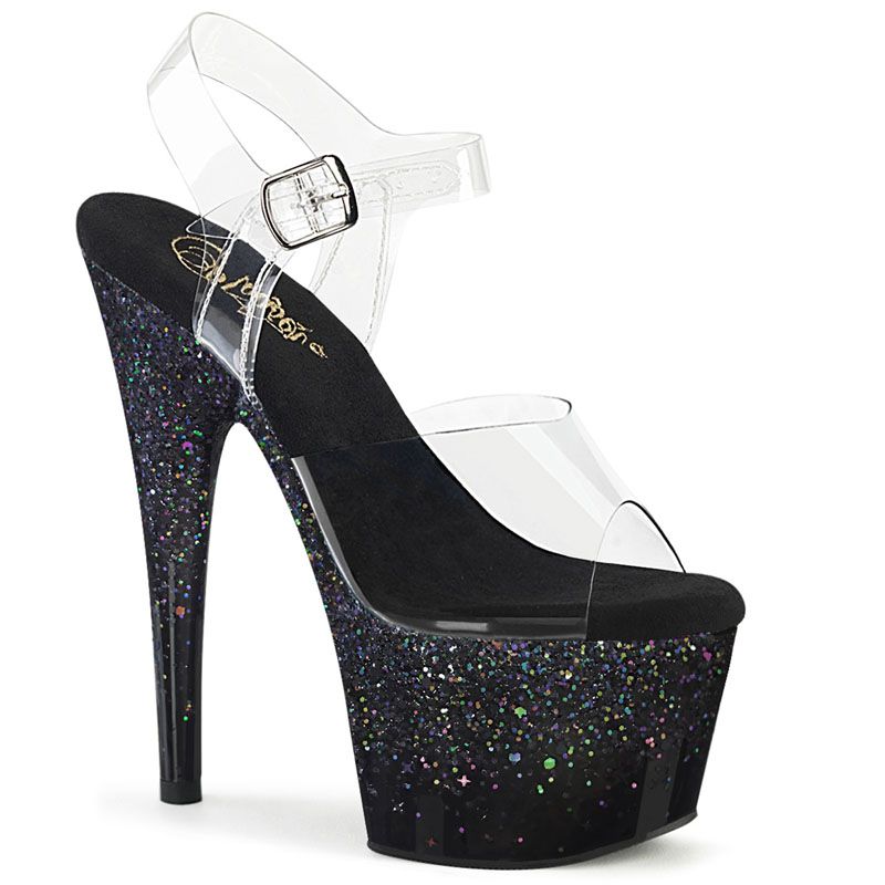 Laissez-vous envoûter par le style magique des sandales ADORE-708SS. Conçue pour celles qui osent briller, cette pièce iconique de Pleaser mélange transparence, hauteur extrême et un jeu de lumière éblouissant.