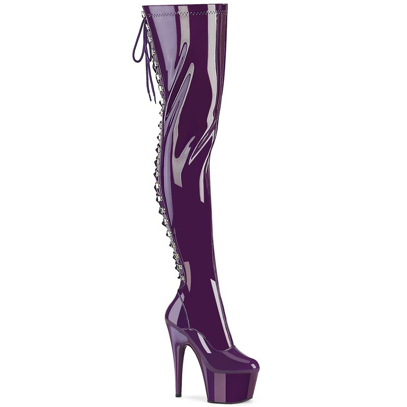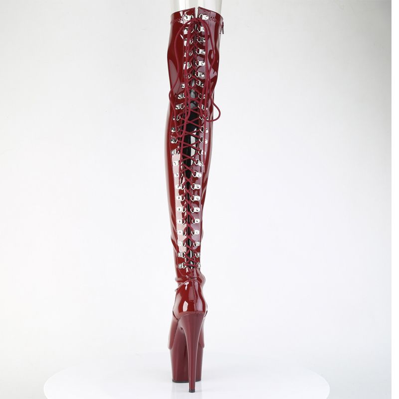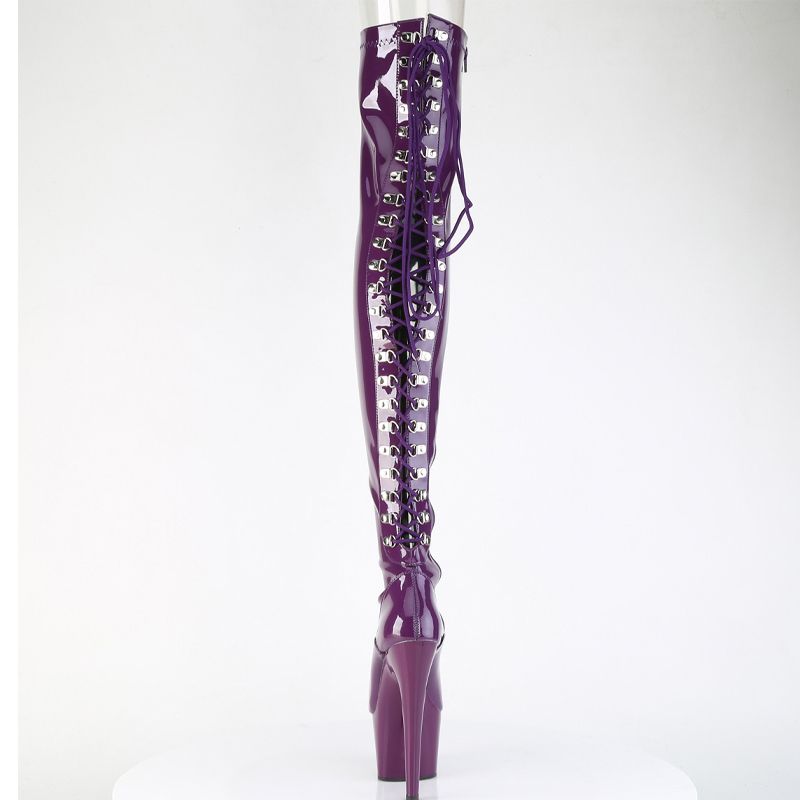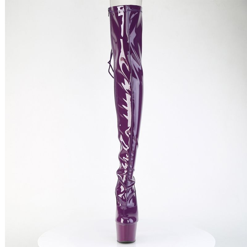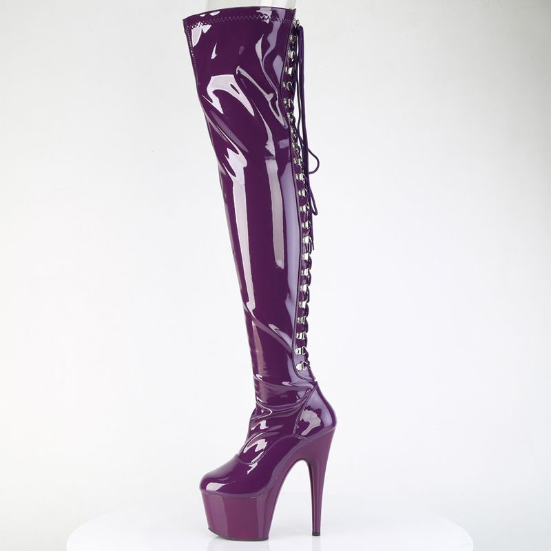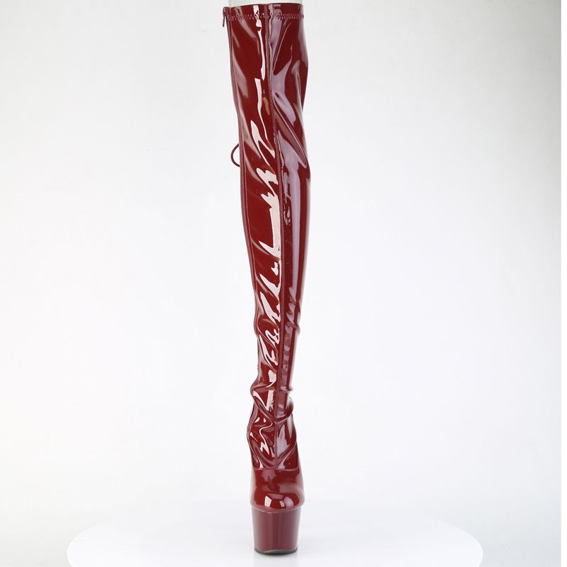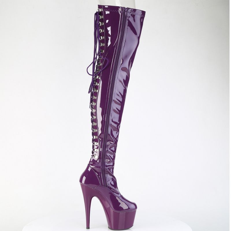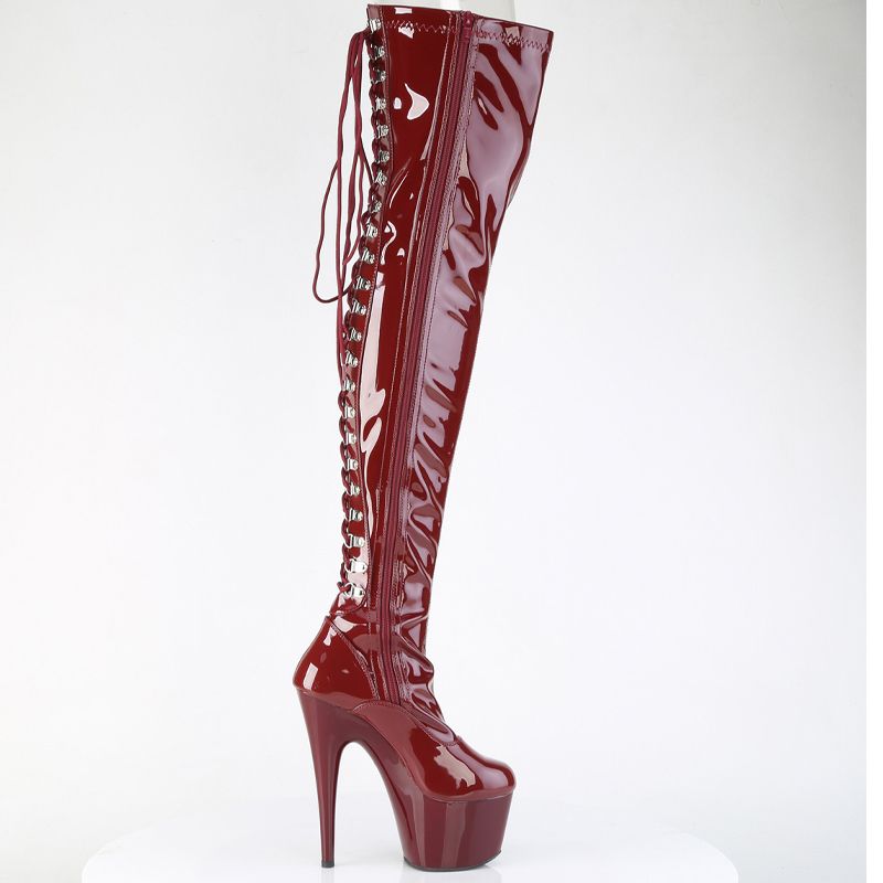 La caractéristique maîtresse est le Laçage D-Ring qui parcourt toute l'arrière de la cuisse, vous permettant d'ajuster le stretch pour une silhouette moulante impeccable. Associées à un talon aiguille de 7" (178mm) et une plateforme de 2 3/4" (70mm) stable, ces bottes vous donnent une confiance absolue.